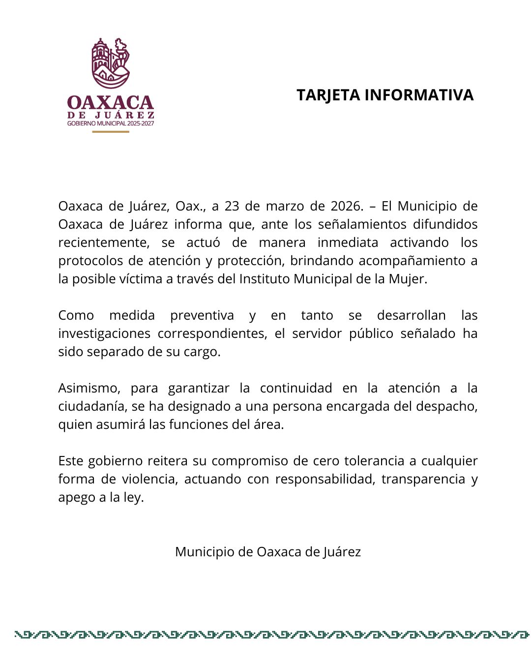 Oaxaca de Juárez, Oax., a 23 de marzo de 2026. – El Municipio de Oaxaca ...