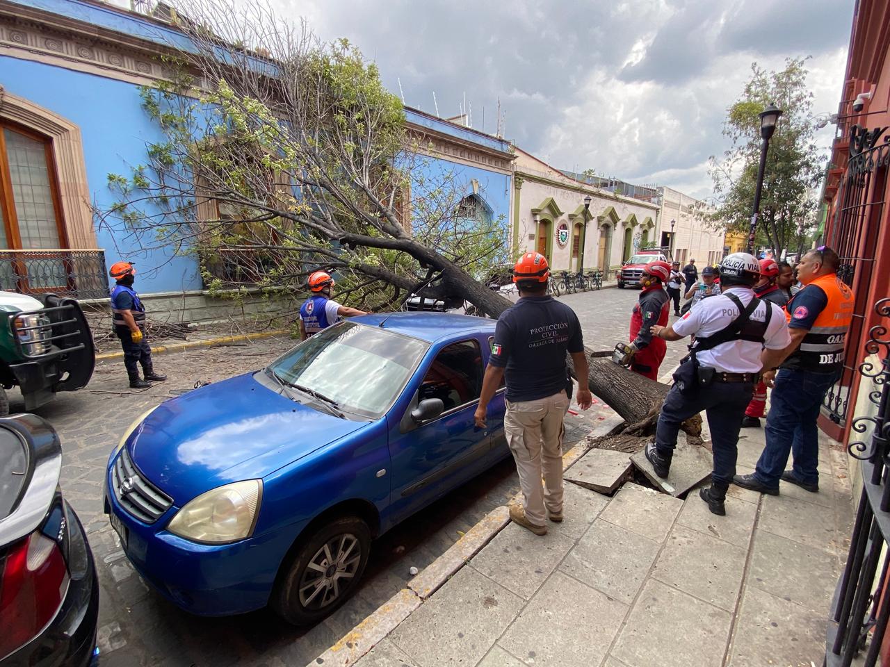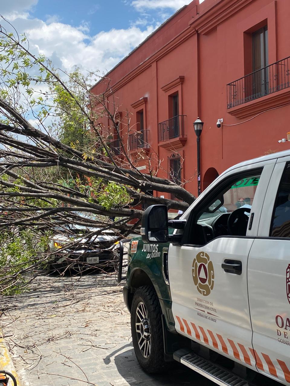 Oaxaca de Juarez, Oax., a 22 de agosto de 2025.- El Municipio de Oaxaca de Juárez, a través de la Coordinación de Protección Civil y la Policía Municipal, atendió esta tarde la caída de un árbol en la calle de Fiallo, en el Centro Histórico.