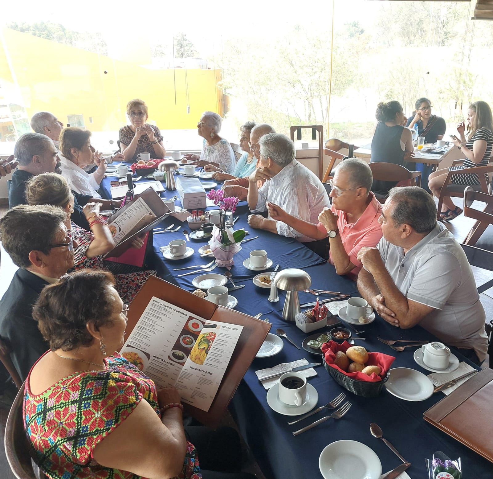 La mañana de este sábado 3 de mayo, las y los egresados de la generación 1967 – 1971 de la licenciatura en derecho de la Universidad Autónoma Benito Juárez de Oaxaca, se dieron cita en el restaurante del Hotel Fortín Plaza para celebrar el cumpleaños de una de sus destacadas integrantes, María Eugenia Villanueva Abraján.