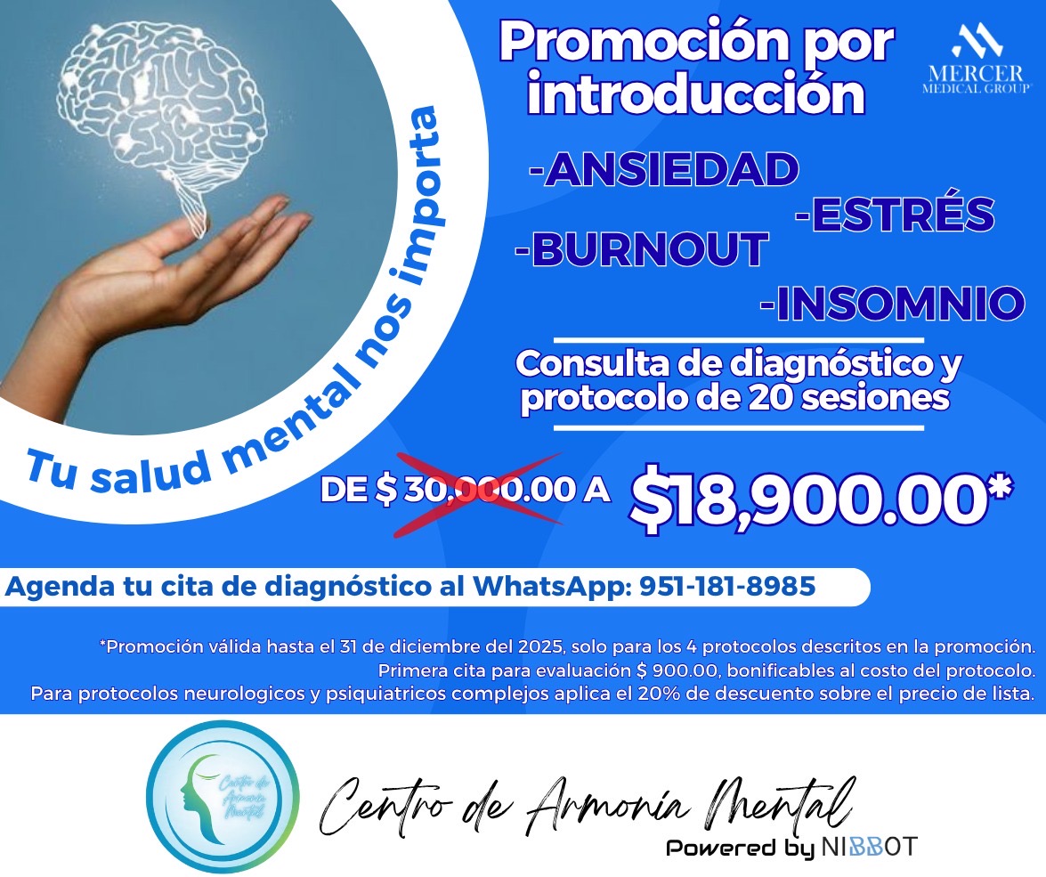 Si deseas agendar una cita diagnóstico puedes hacerlo a través de su número de WhatsApp 951-181-89-85.