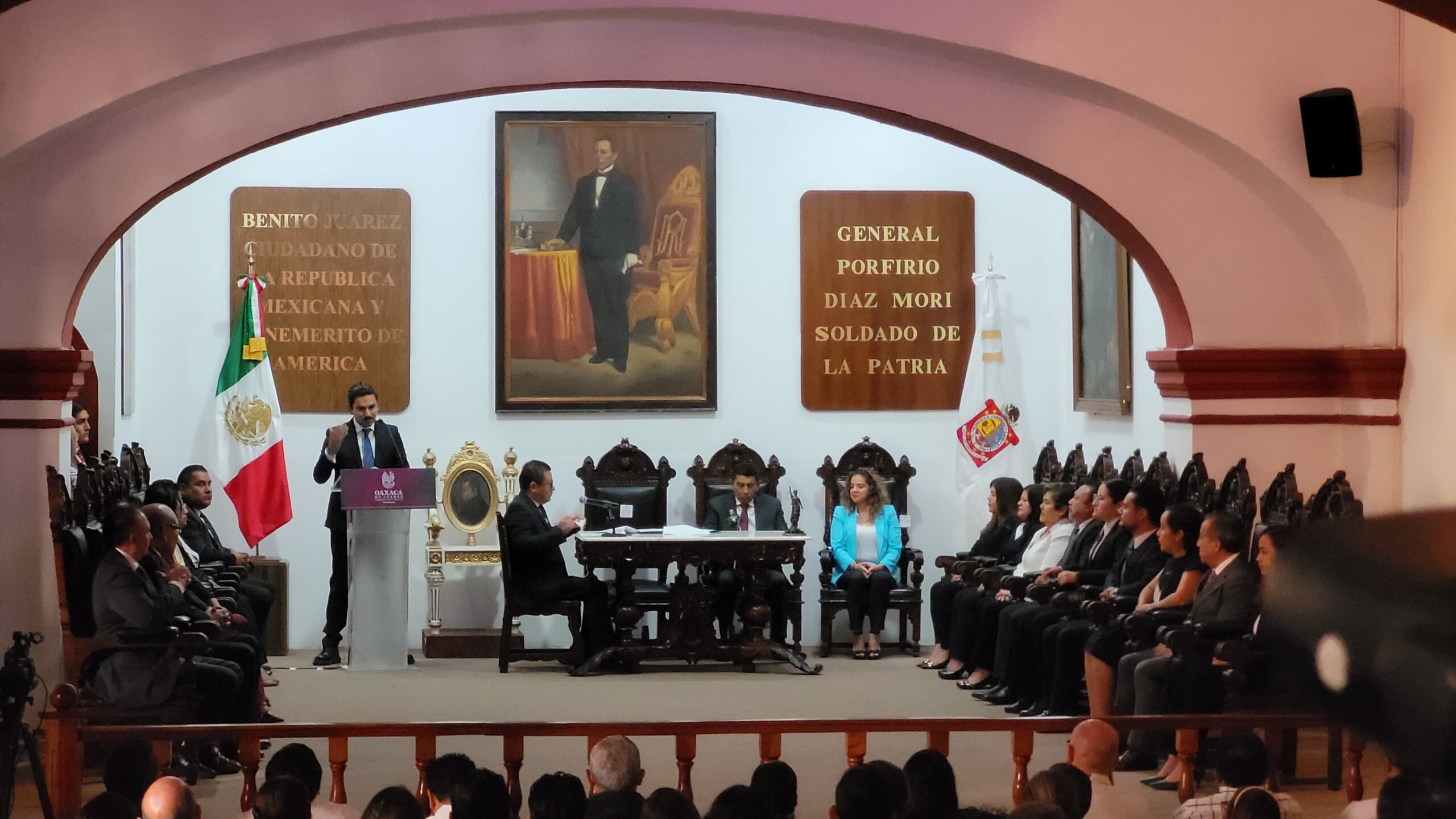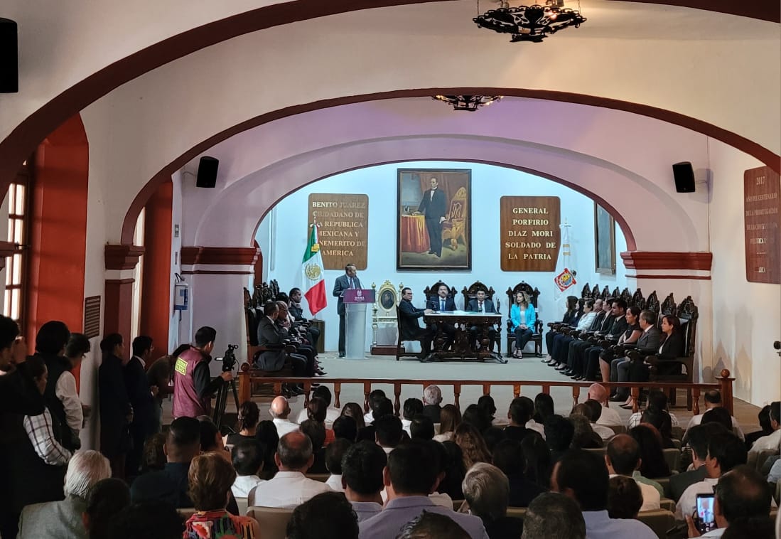 En una sesión solemne, el presidente municipal estuvo acompañado del gobernador de Oaxaca, Salomón Jara Cruz y de la presidenta del Tribunal Superior de Justicia, Berenice Ramírez Jiménez.