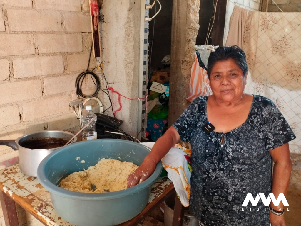 Tal como lo aprendió de su madre y su abuela, acostumbra a llevar el maíz al molino para obtener la masa, también se encarga de la elaboración de los tradicionales platillos, entre ellos el mole oaxaqueño, que da vida y sabor a los tamales.