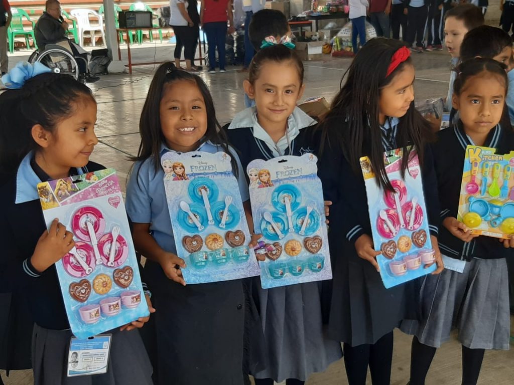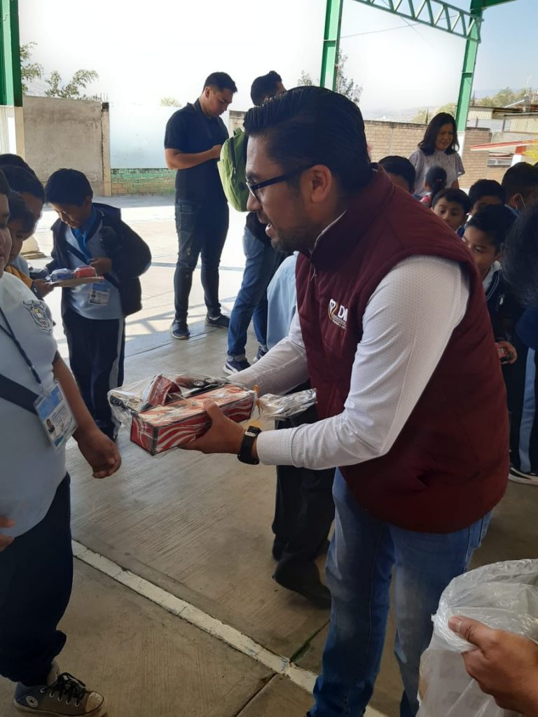 Niños y niñas de la escuela primaria Paul Percy Harris recibieron juguetes y calzado como parte del programa “El Kilómetro del Juguete” que en diciembre pasado implementó el sistema de Desarrollo Integral de la Familia del Municipio de Oaxaca de Juárez.