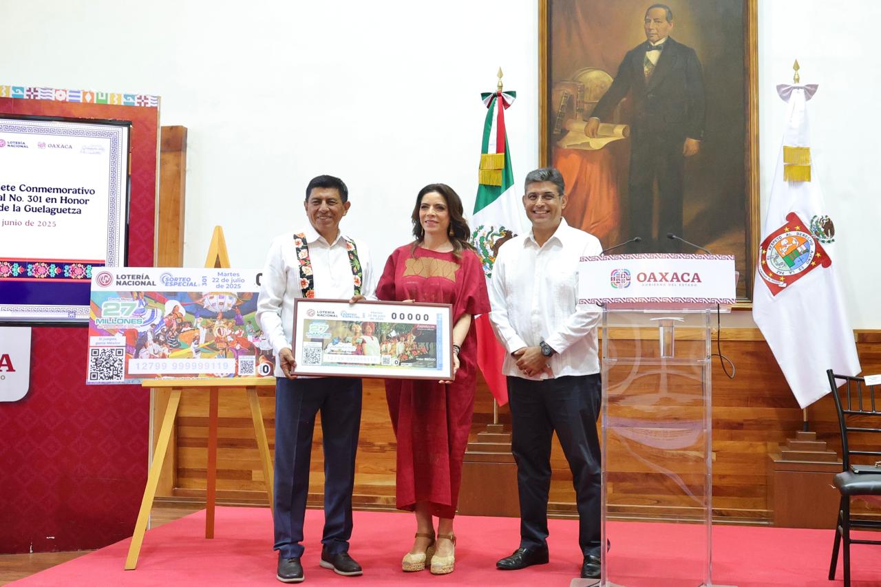 «Estamos contentos de estar en Oaxaca, más que un sorteo traemos un reconocimiento profundo a lo que representa esta tierra para el país, hoy damos a conocer con mucho entusiasmo que este sorteo especial número 301 estará dedicado a la Guelaguetza 2025, lo vamos a celebrar en vivo desde Oaxaca, el evento se llevará a cabo el martes 22 de julio después del Primer Lunes del Cerro, teniendo como sede el Auditorio Guelaguetza, la cita es a partir de las 18:00 horas», aseveró.