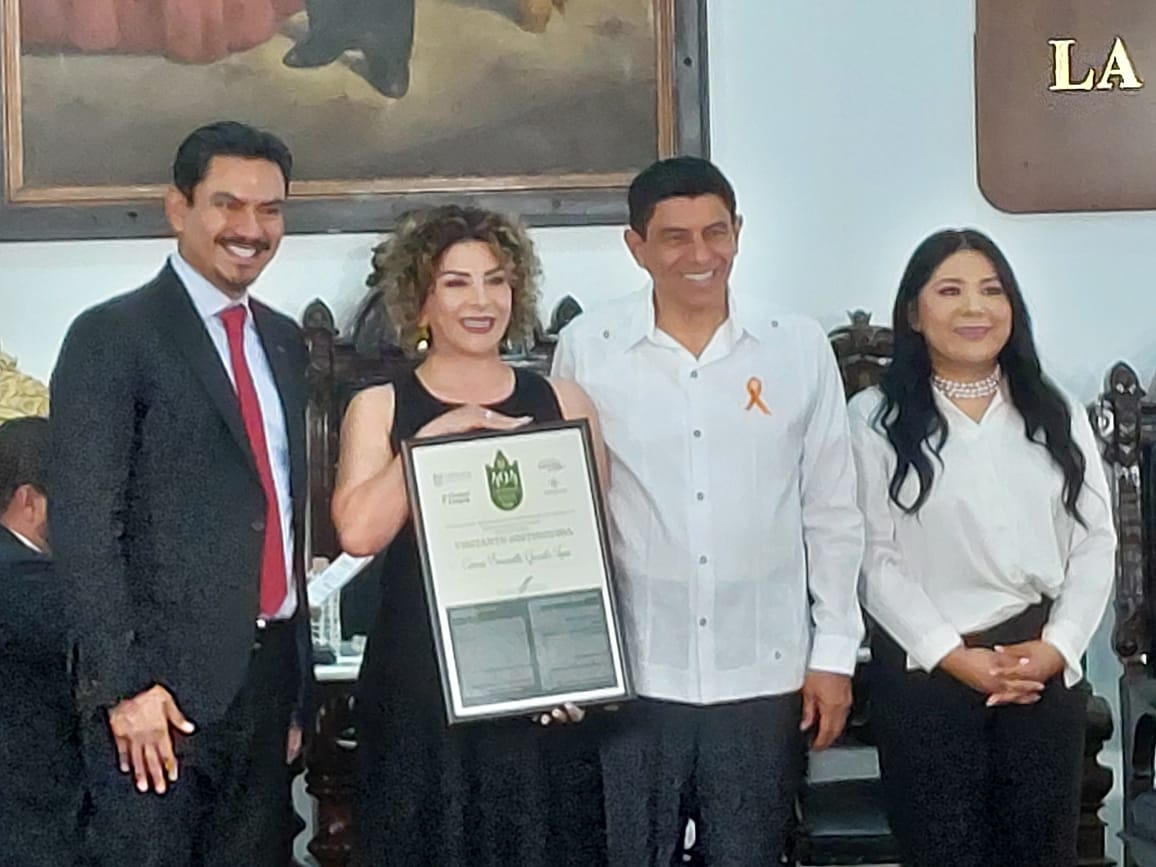 El reconocimiento Ciudadano de Antequera fue para la empresaria y consultora turística, María de La Paz Martínez Iturribaría; así como para Rubén García Díaz, artesano e integrante del Colectivo Cartoneros de México.