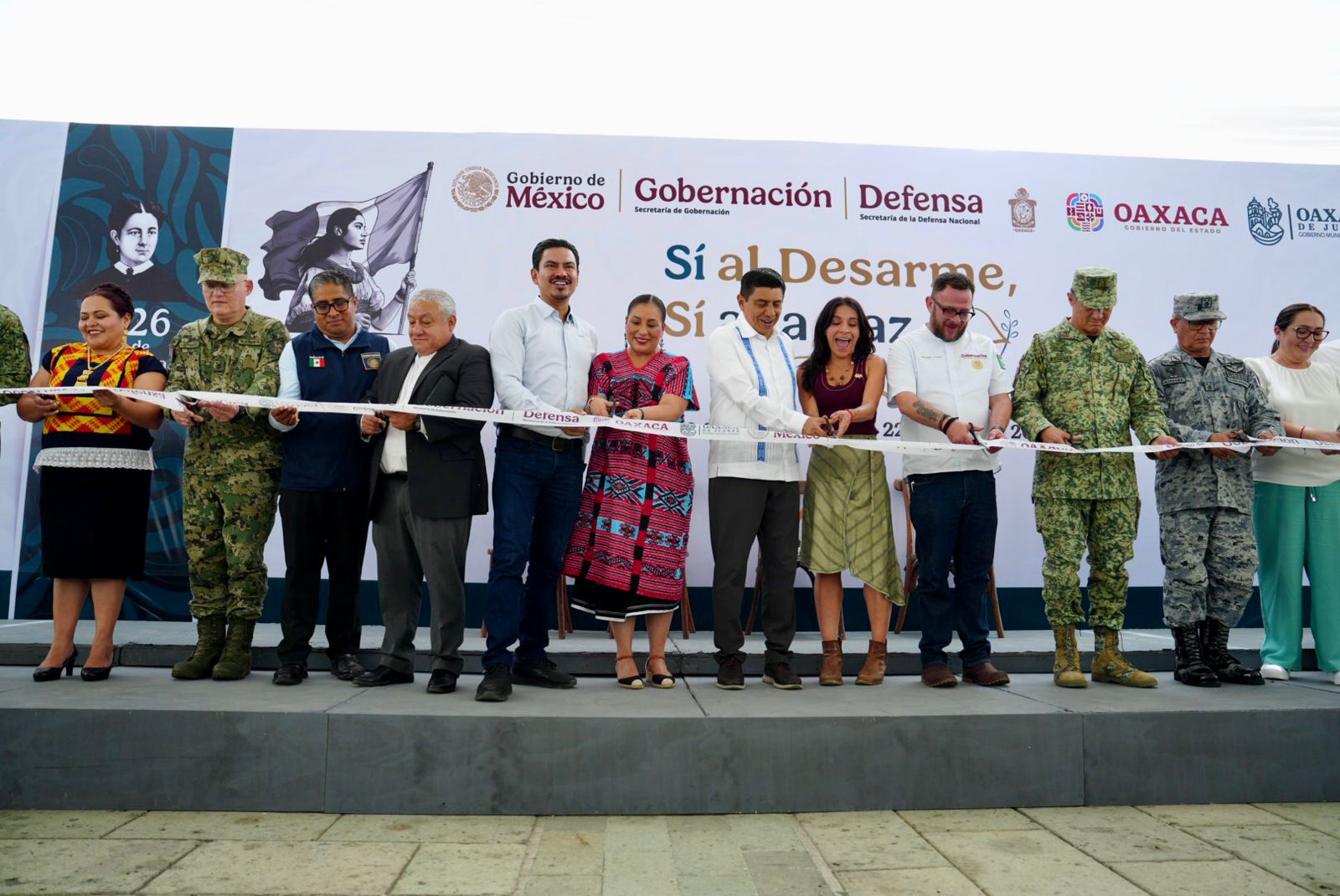 El evento fue encabezado por el gobernador Salomón Jara Cruz, y en ese marco, el presidente municipal informó que el programa “Sí al Desarme, Sí a la Paz” estará disponible en la Plaza de la Danza hasta el 1 de mayo de 10 de la mañana a 3 de la tarde, invitando a la ciudadanía a sumarse a esta estrategia en favor de la paz y la seguridad.