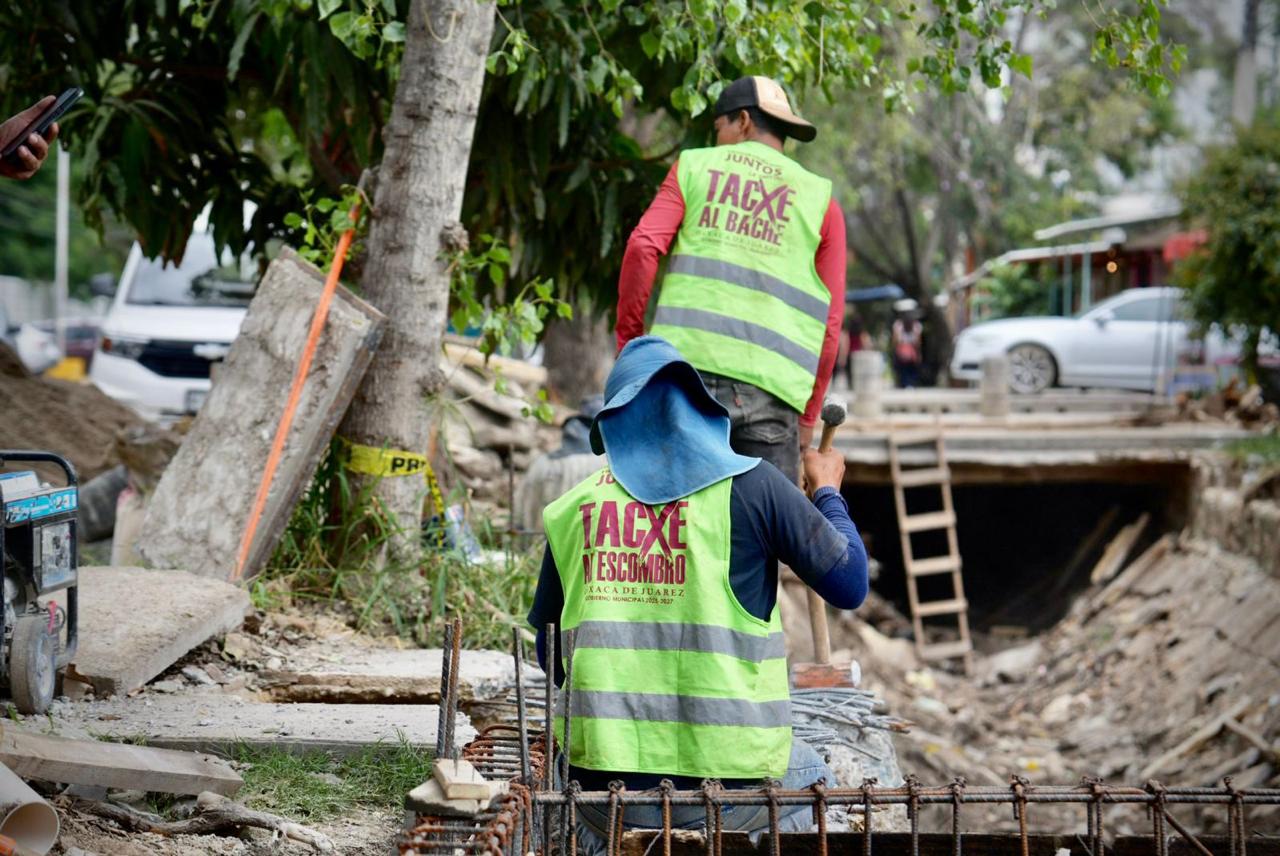 Oaxaca de Juárez, Oax. 22 de agosto de 2025.- Derivado del colapso de la losa de concreto armado en el Andador Huerto los Ciruelos, ubicado en el Fraccionamiento Trinidad de las Huertas, el Gobierno Municipal de Oaxaca de Juárez, a través de la Secretaría de Obras Públicas y Desarrollo Urbano realiza la rehabilitación del canal pluvial en esta área.