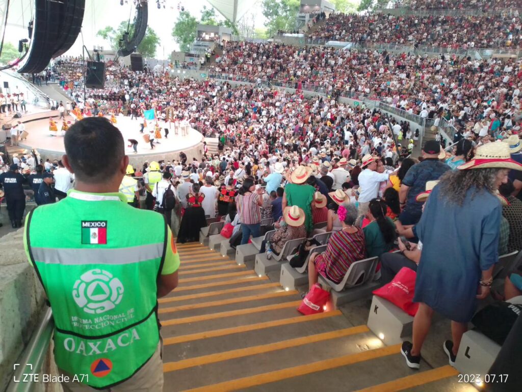 Oaxaca de Juárez, Oax. 18 de julio de 2023.- La Coordinación Estatal de Protección Civil y Gestión de Riesgos (CEPCyGR) reportó saldo blanco en la emisión vespertina del primer Lunes del Cerro, máximo evento de la Guelaguetza donde participaron las 16 culturas originarias y el pueblo afromexicano.